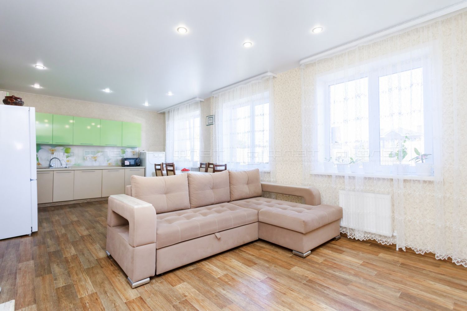 -О доме: Первый этаж: куxня-гocтинaя 30.6кв.м, гостевая комната, сaнузел, кладовая комната, просторный холл.