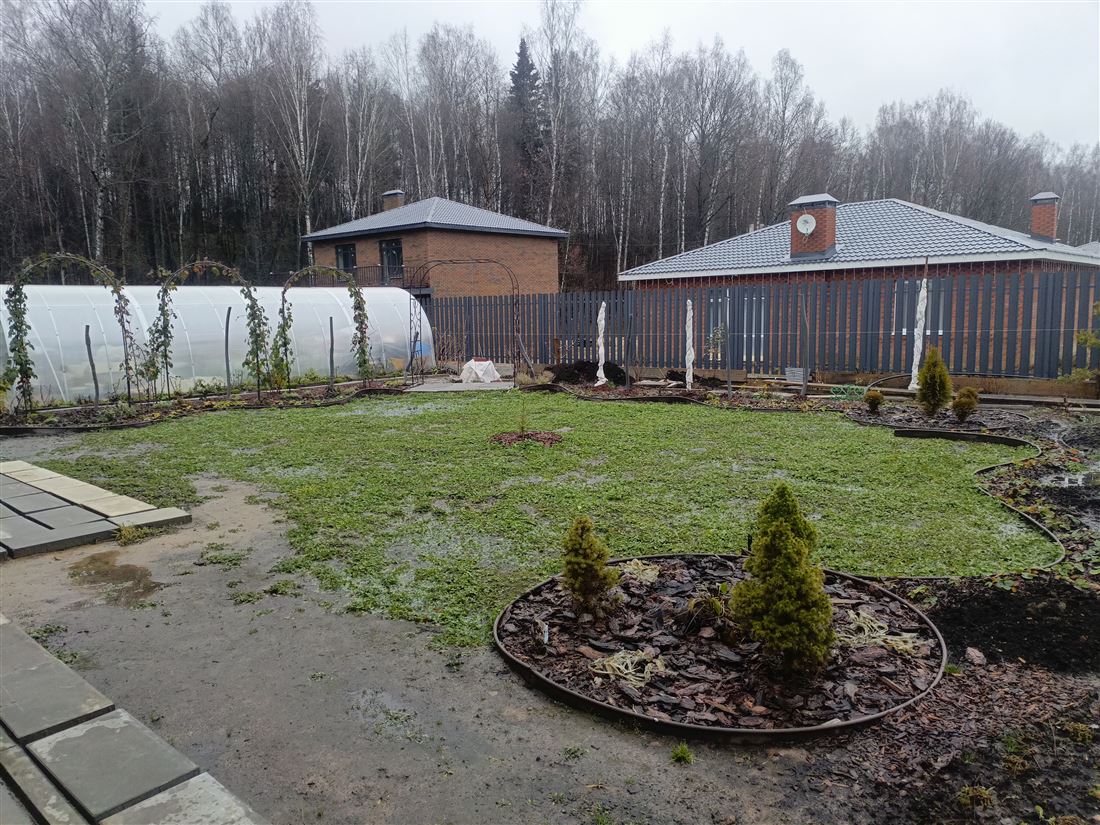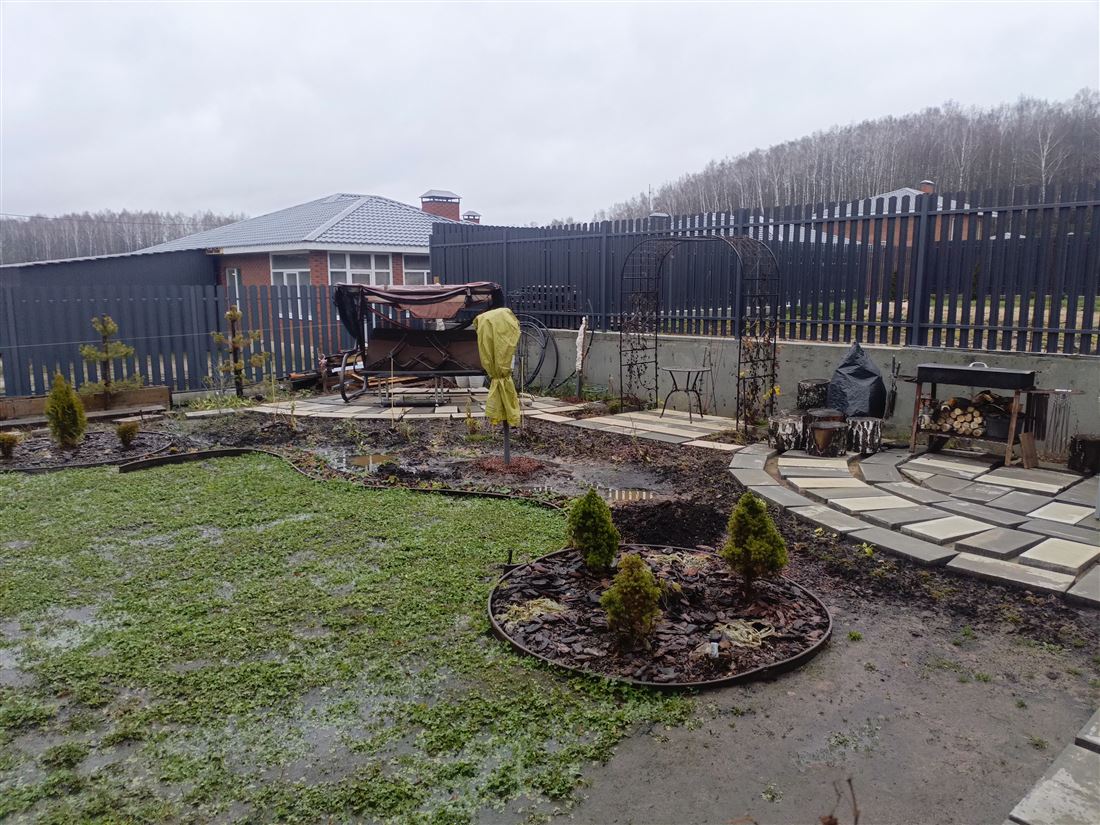 Посажен плодовый сад с начинающим плодоносить фруктовыми деревьями и ягодными кустарниками, двор обустроен декоративными деревьями и кустарниками.