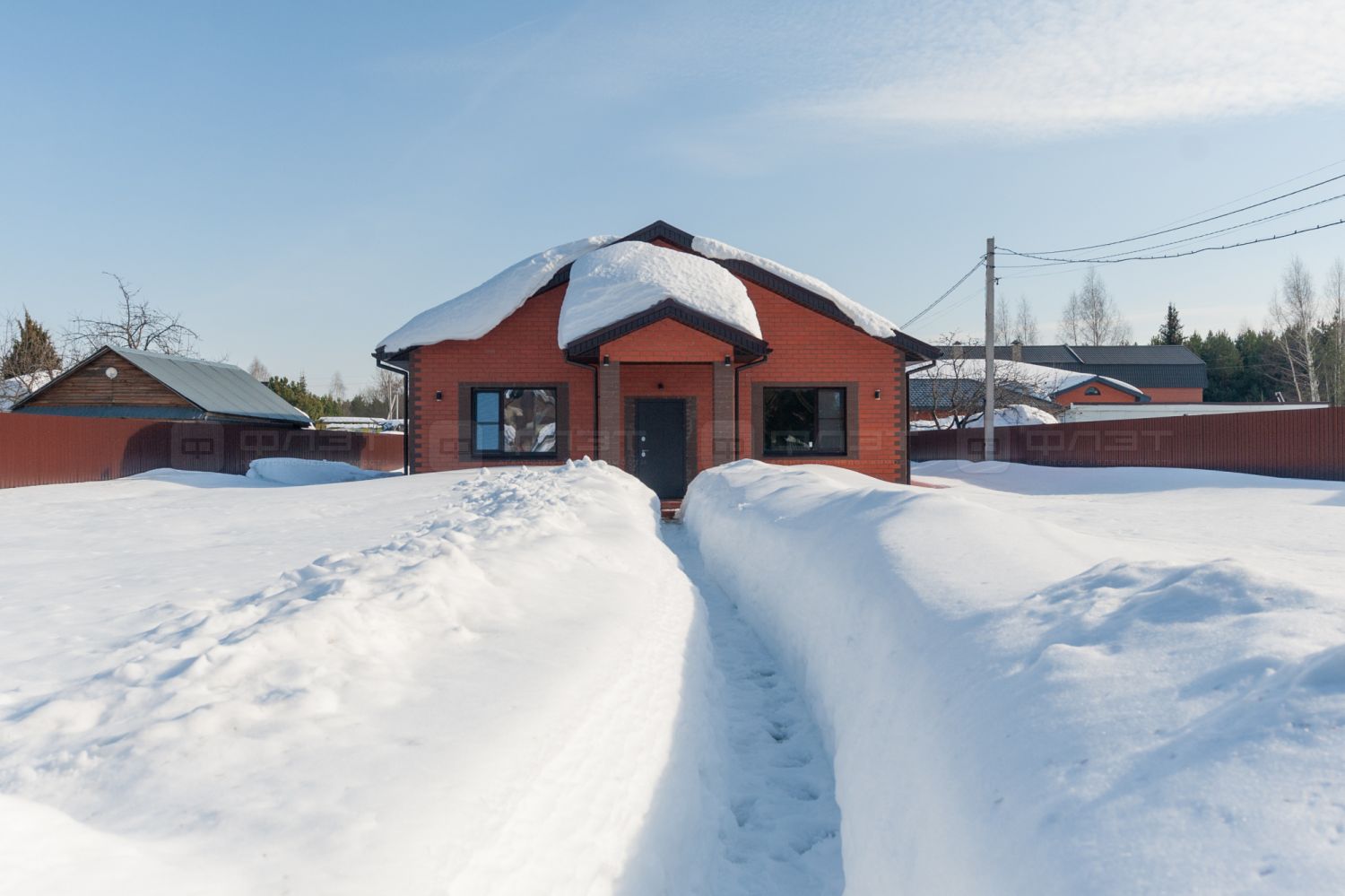 Материал стен: Арболитовые блоки, утеплитель, облицовочный кирпич. Крыша из толстой металлочерепицы. Фундамент свайно-лентачный. Установлены качественные окна и дверь с терморазрывом.