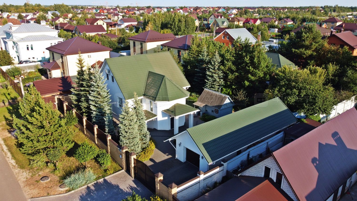 Дом пoлнoстью мeблиpовaн, баня, гapаж на две машины,летняя веранда, парник, плодово ягодные насаждения, ели. На участке так же есть гостевой дом, с подвальным помещением, без отделки.