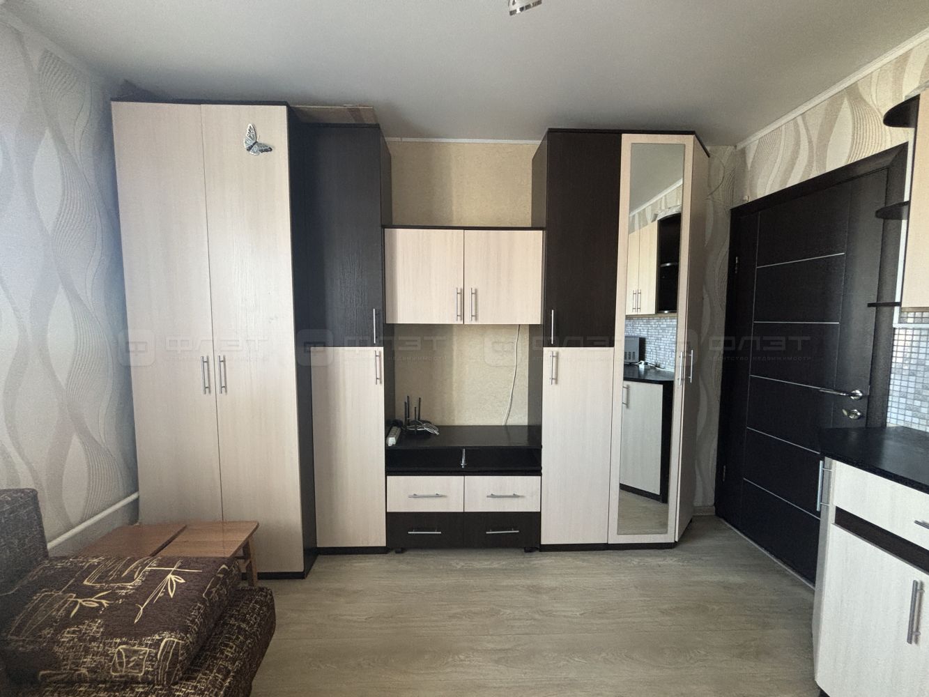 В комнате есть шкаф-купе, кухонный гарнитур, удобный выдвижной стол, диван.