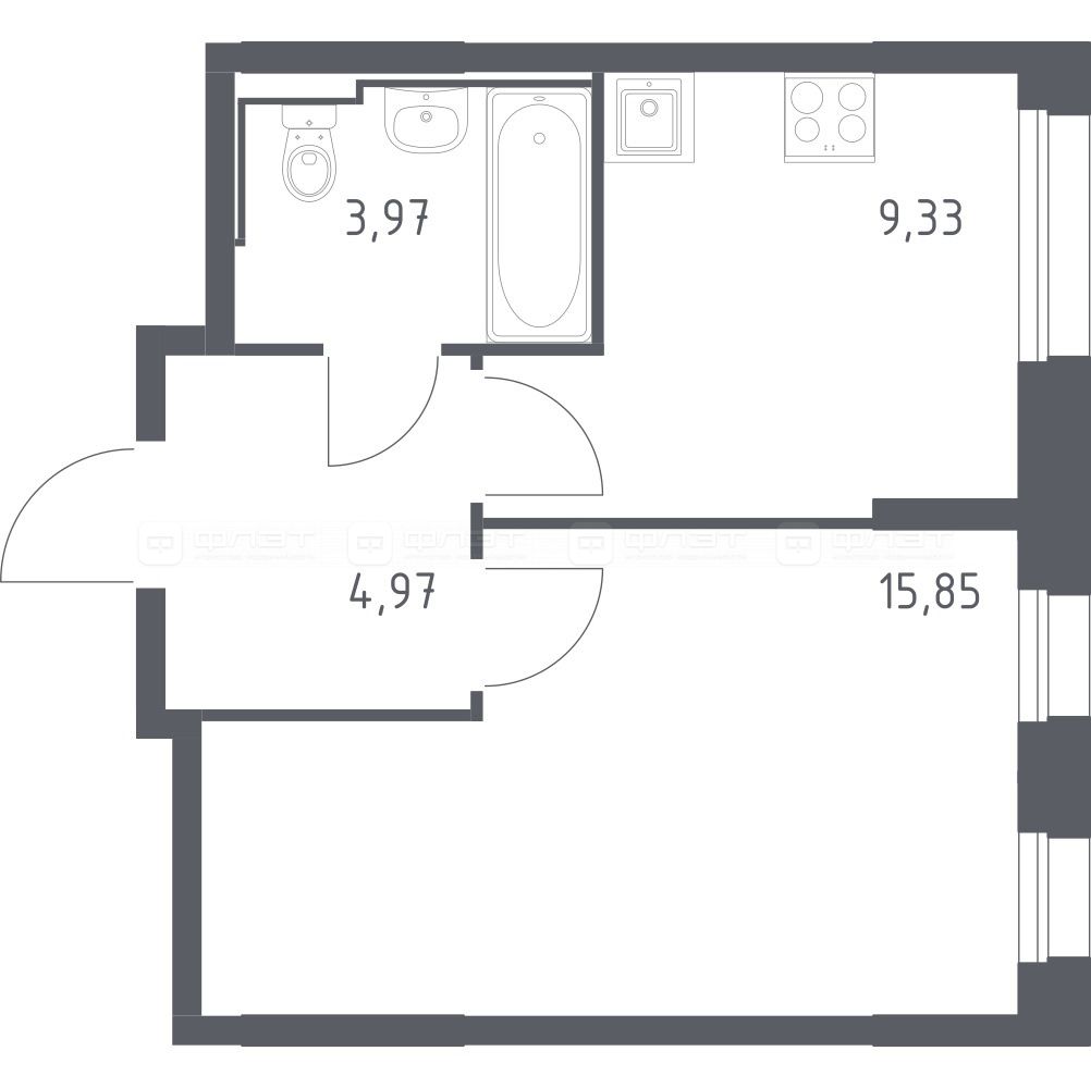 Продаётся 1-комнатная квартира площадью 34,12 м² на 10 этаже современного жилого комплекса от надежного застройщика Группа Самолет.