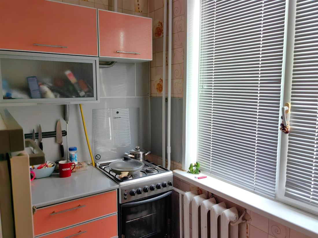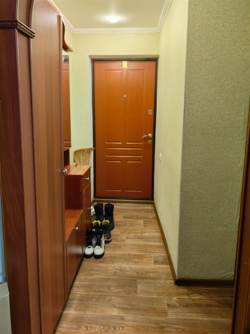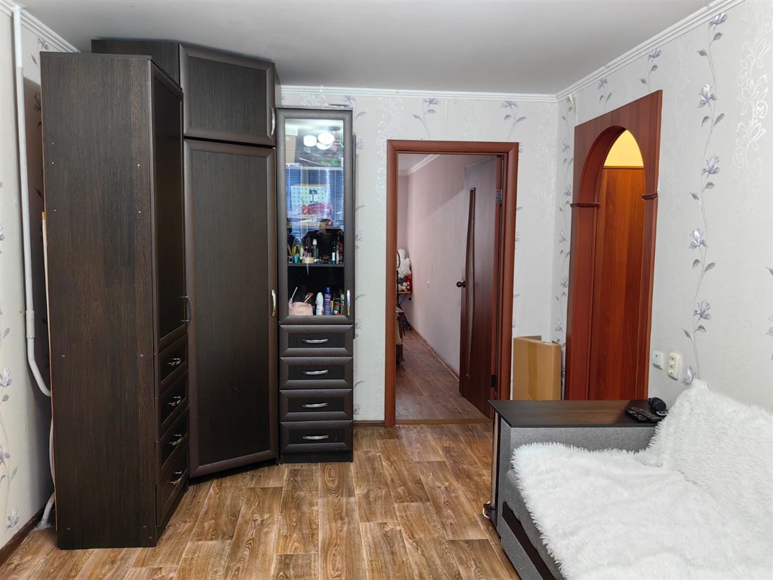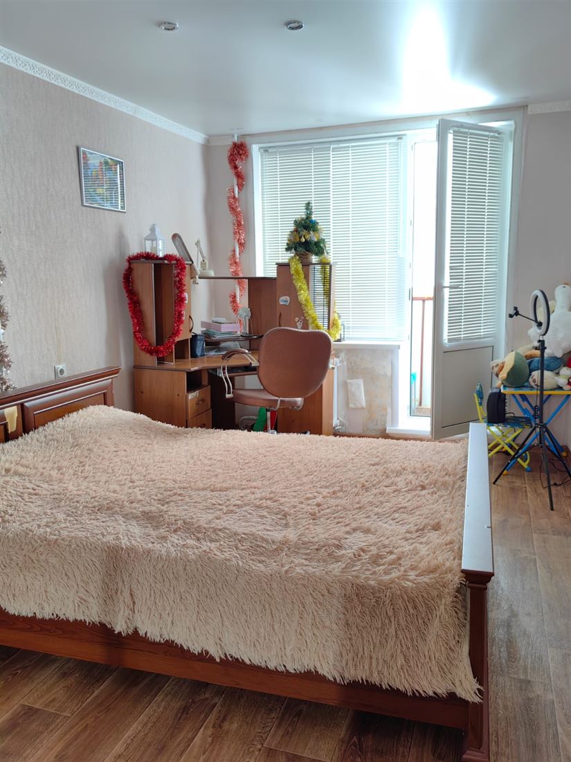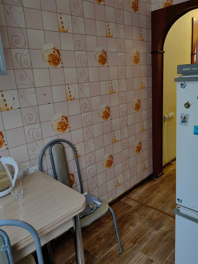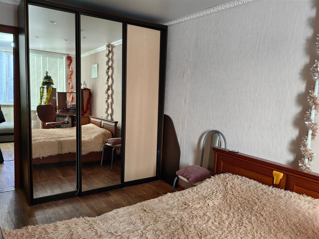 Уютная, теплая квартира. Пластиковые окна, филенчатые двери, полы - фанера застелена линолеумом. Балкон застеклен.
