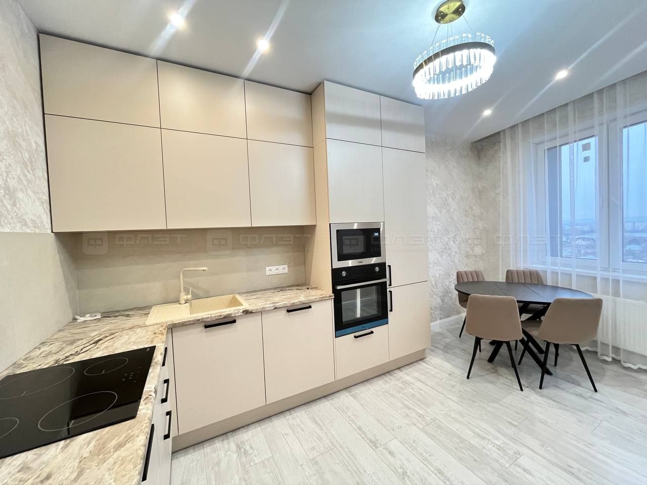 • Большая кухня-гостиная – настоящий центр притяжения! Здесь удобно как готовить кулинарные шедевры, так и собирать гостей или проводить уютные семейные вечера. Функциональное зонирование позволяет максимально эффективно использовать каждый квадратный метр.