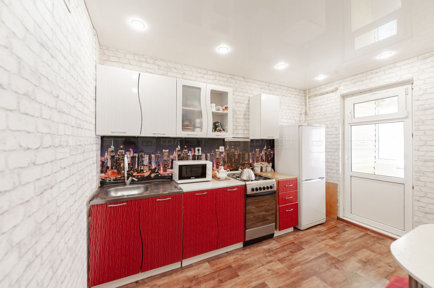 На кухне остается современный кухонный гарнитур с газовой плитой.