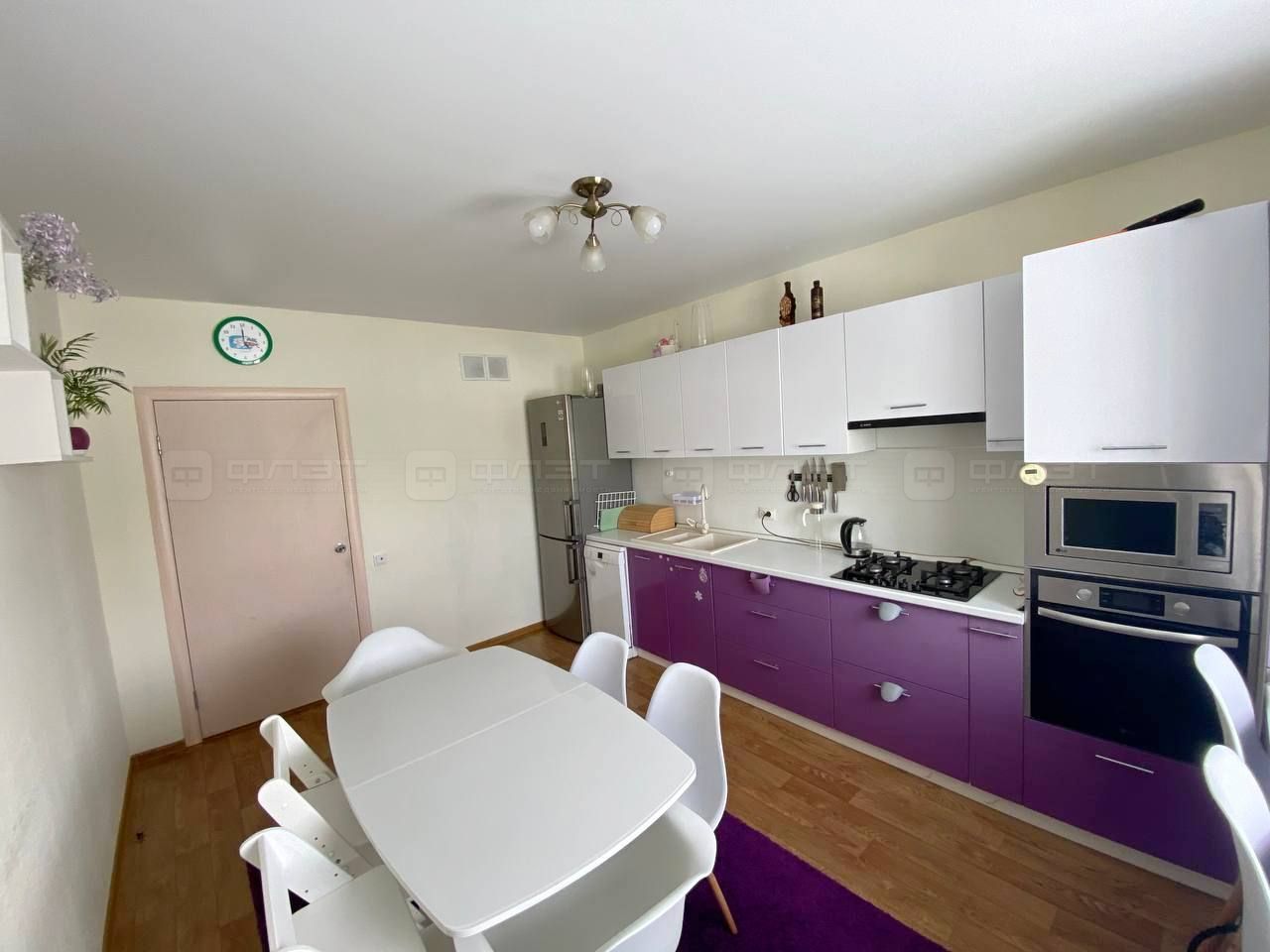 Квартира просторная, чистая, современным ремонтом. На кухне установлен современный кухонный гарнитур с встроенной техникой.