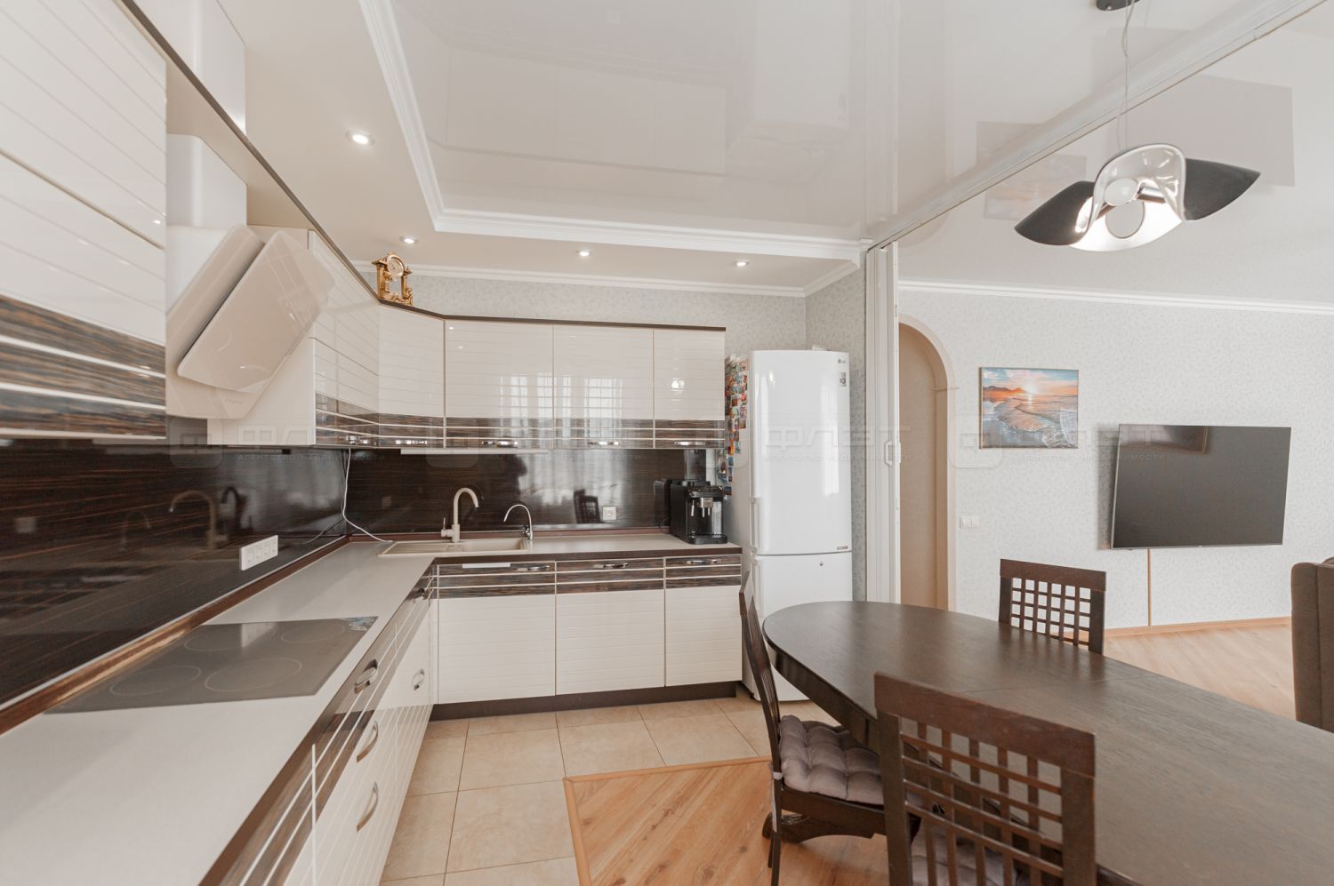 Квартира продаётся с отличным дизайнерским ремонтом, остаётся полностью оснащённая кухня немецкой фирмы KUCHENBERG (посудомоечная машина Bosch, варочная панель, духовой шкаф Electrolux и вытяжка). Мягкая мебель в гостиной, встроенные качественные шкафы-купе во всех комнатах и в коридоре. Имеется кондиционер.