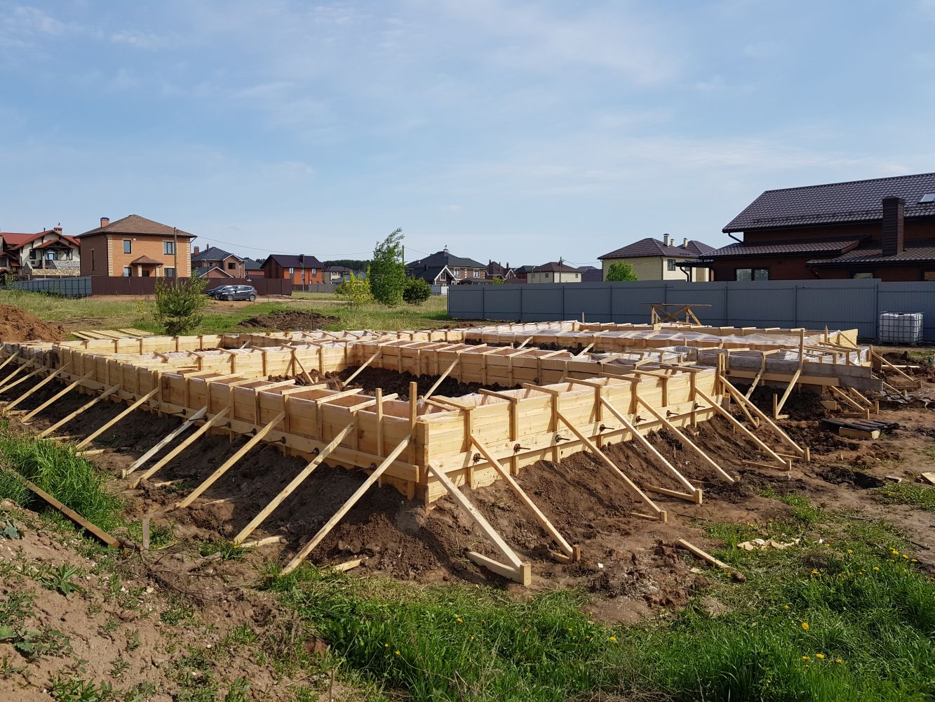 Участок с свайно-ленточным фундаментом под дом 10х12 и простроем 6х16 (гараж, сауна, комната отдыха) см. фотографии.
